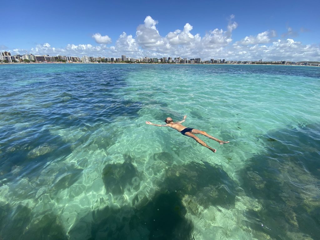 Um passeio imperdível pelas piscinas naturais e o Farol da praia de Ponta Verde em Maceió, com águas mornas e transparentes ideais para banho, fotos e observação de peixes coloridos.